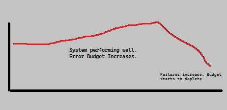 An error budgeting graph could then be plotted based on how long has the system been good or bad. The longer the system remains good, the more the error budget, the longer it has been bad, the lesser we have in our error budget. Thus by looking at what’s remaining in the error budget, we must prioritise work towards improving reliability vs building new features.